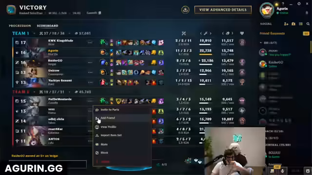 Es wurde eine League of Legends-Session gespielt, die im Nachhinein als „abscheulich“ und „schrecklich“ eingestuft wurde. Der Vorgang der Partien war geprägt von starker Frustration über das wahrgenommene Matchmaking und die Champion-Picks des gegnerischen Teams. Obwohl ein beeindruckendes Outplay gelang, konnte das Blatt nicht gewendet werden und führte zu einem unglücklichen Spielende.
