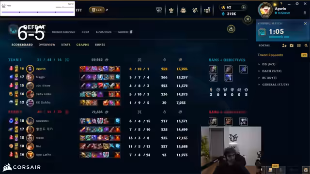 00:06:34Der Streamer beginnt den Tag mit nur vier Stunden Schlaf, zeigt sich aber hochmotiviert, in League of Legends zu klettern. Er erwähnt, dass er um 3 Uhr morgens ins Bett ging und um 7:30 Uhr wieder aufwachte, was ihn überraschend früh für ein Spiel bereit machte. Trotz des Schlafmangels ist seine Entschlossenheit, im Rang aufzusteigen, spürbar. Er analysiert bereits früh im Spiel die Matchups, wie das gegen Corky und Rez, und kommentiert die Spielzüge seiner Teammitglieder und Gegner. Er stellt fest, dass die 8-Uhr-Warteschlangen „verrückt“ sind und er sich auf das Spiel konzentrieren muss, um sein Bestes zu geben, auch wenn er unsicher ist, wie gut er spielen wird. Sollte es nicht ausreichen, zieht er in Erwägung, frühzeitig aufzuhören und ein Nickerchen zu machen.