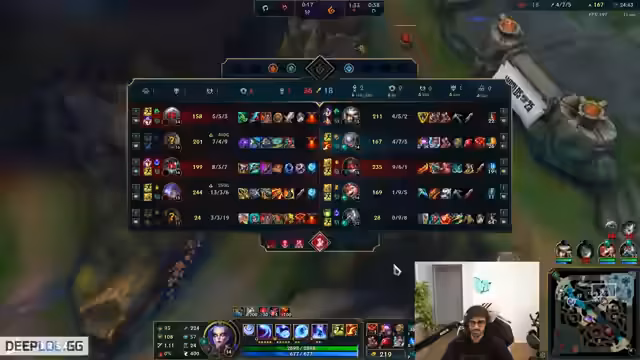 10:47:42Der Streamer stellt fest, dass sein Camille irgendwie dadurch getötet wurde. Er erklärt, dass der Kill auf Ambessa nur etwas wert ist, wenn er schnell ist. Deshalb ist er geblieben, denn wenn es schnell geht, verliert er keine Camps oder nur eines. Deshalb hat er seine Basis abgebrochen und ist hochgegangen. Er ist jetzt Barak und gleicht das Tempo aus. Er möchte seinen Red-Buff nehmen, ohne zu sterben. Er fragt sich, ob er den Skill-Tower bekommen wird. Er ist unsicher, ob sie zurückteleportieren kann. Wenn er Top geht, ist es nicht schlecht, aber er möchte farmen. Er sieht den A. Er fragt sich, ob Zelda Top noch nicht öffnen kann. Er ist der Meinung, dass es in Ordnung ist. Er glaubt, dass es wahrscheinlich ein Clean-Up ist. Er wird sehen. Er findet Karkenslayer beängstigend und fragt, warum so früh. Er muss Talies gehen. Er ist unsicher, ob es das Spiel ist, aber wahrscheinlich nicht. Er glaubt, dass es eigentlich nicht gewinnbar ist. Er denkt, dass der Gegner aus einem bestimmten Grund in Panik gerät, aber er ist nur für seine Grumps-Form da. Beria und Flasher sind dabei. Er hat den Grumpf und sollte nicht die Halt-Attacken benutzen, um besser zu sein. Er fragt sich, ob sie auf dem Gumpf sind, was absolut nicht spielbar ist. Wenn er trifft, tötet er tatsächlich. Zumindest bekommen sie Wanderer. Absolut nicht.
