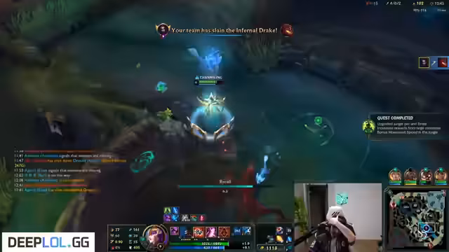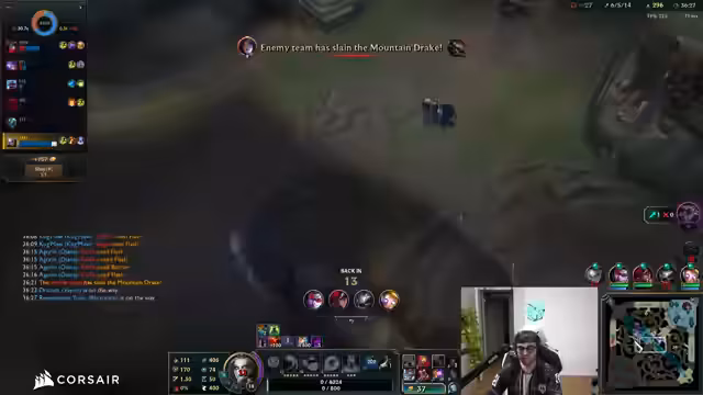 00:14:13Im Mid-Game agiert der Streamer sehr proaktiv und versucht, durch visionale Präsenz und Objektive wie Rift Herald und Dragon Druck auf das Spiel auszuüben. Er analysiert den Zustand des gegnerischen Aatrox und glaubt, dieser könnte seine Ultimate nicht mehr einsetzen, was sich jedoch als falsch herausstellt. Es kommt zu mehreren hektischen Teamkämpfen und Ganks in der Top- und Bot-Lane, bei denen agurin versuch, Teamkollegen zu unterstützen und Picks zu initiieren, aber auch unter den aggressiven Moves des Gegnerteams leidet.