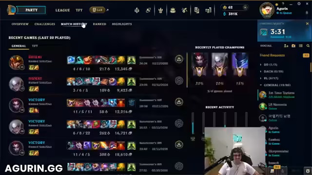 00:01:07Zu Beginn des Streams begrüßt der Streamer seine Zuschauer und kündigt an, dass Drottos in etwa zehn Minuten starten werde. Es folgt eine Unterhaltung über die Stärke von Azir und die Meinung der Zuschauer zum Master-Rang. Der Streamer erwähnt, dass es viele Bände in diesem Stream geben wird und befasst sich humorvoll mit dem Vorwurf, die Glaston nicht zu helfen. Er wehrt sich gegen den Vorwurf, sein Witz sei nicht brillant, und äußert Frustration über mangelnde Motivation.