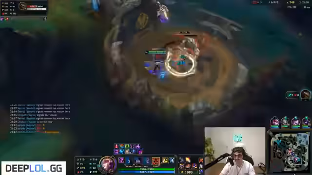 02:53:42Der Streamer plant einen strategischen Zug, um den ersten Krabben-Spawn zu kontrollieren. Dabei wird die Lage im Jungle analysiert, die Gesundheit der Gegner eingeschätzt und ein gezielter Angriff vorbereitet. Der Fokus liegt darauf, den gegnerischen Top-Laner zu isolieren und einen Vorteil für das Team zu erzielen, indem man einen vorteilhaften Krabben-K erzwingt.