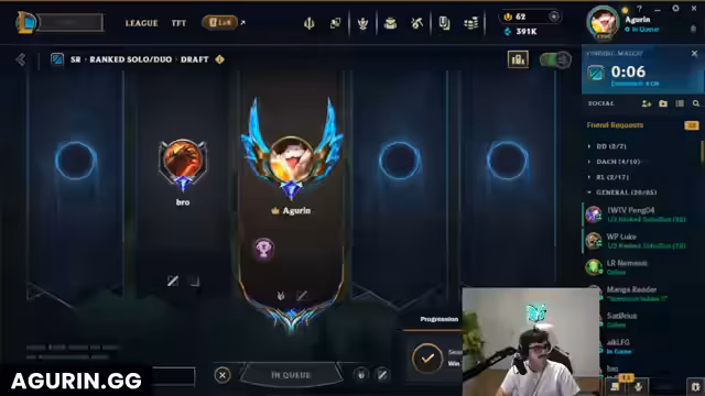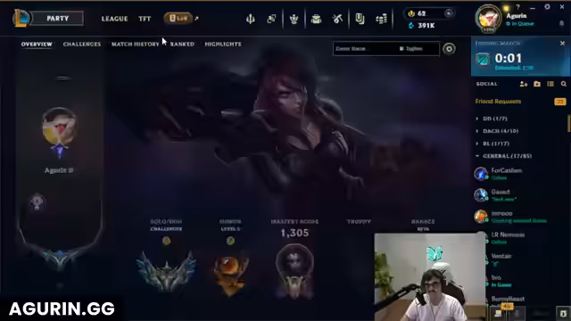 00:39:08Der Streamer macht eine grundsätzliche Pause vom Spielen, um das Matchmaking-System von Riot zu kritisieren. Er ist verärgert darüber, warum er regelmäßig gegen Spieler mit viel höherer MMR (Challenger) spielt, während seine Teammates auf einem niedrigeren Niveau (Master) sind. Er bezweifelt, dass sein Verhalten im Spiel etwas ändern kann, und beschreibt die Erfahrung als frustrierend und unmöglich.