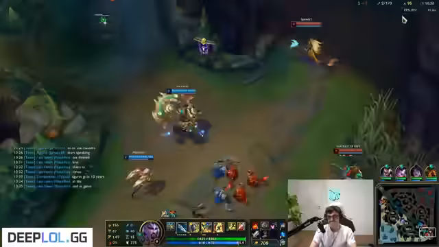 00:13:34Der Streamer beklagt mangelnde Team-Koordination. Sein Team stirbt an verschiedenen Orten auf der Map, während der Gegner einen klaren Vorteil hat. Es kommt zu einem vereitelten Teamfight, da sein Yasuo seine Ultimate nicht einsetzen konnte und der Gegner stärker wirkte. Der Spielfluss ist für den Streamer nicht mehr nachvollziehbar, und er beschreibt den Verlust des Spiels als unausweichlich.