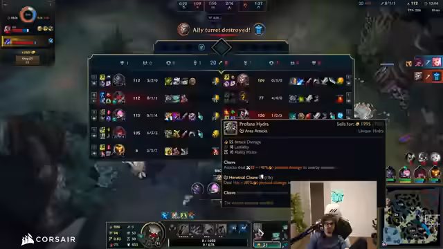 06:17:27Das Spiel nähert sich dem Spätstadium, mit wiederholten Versuchen, Nashor zu contesten. Der Streamer bemerkt Vision-Probleme und die Schwäche seines Teams, während er versucht, Sidelanes zu pushen. Er erwähnt Champions wie Ryze und Akali, die schwer zu handhaben sind, und beschreibt TP-Plays, um Teamkämpfe zu beeinflussen. Trotz einiger Erfolge in Kills und Objekten wird das Spiel als verloren beschrieben, mit Fokus auf defensive Macro-Entscheidungen und die Herausforderung, gegen spezifische Champion-Kombinationen anzutreten.