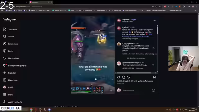 12:35:07Nach mehreren Spielen reflektiert er den Tagesertrag von plus 8 LP bei über 12 Stunden Spielzeit. Er berechnet resigniert, dass er bei dieser LP-Gewinnrate von 0,7 pro Stunde etwa 400 Stunden für den Aufstieg von Rank 2 auf Rank 1 benötigen würde – ein unrealistisches Ziel, was zur Entscheidung führt, den Stream zu beenden.