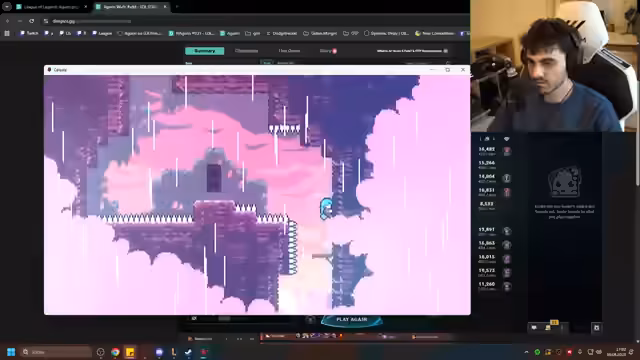 04:24:56Nach einer längeren Session in League of Legends wechselt der Streamer zu dem Jump'n'Run Spiel Celeste. Das Ziel ist es, das Spiel durchzuspielen, wobei der Fokus auf das Erkennen der Spielmechaniken und das Bewältigen von anspruchsvollen Plattform-Herausforderungen gelegt wird. Die ersten Eindrücke sind gemischt, der Streamer findet die anfänglichen Räume verwirrend und bemerkt, dass sein Zusammenspiel aus Dash und Sprung nicht immer intuitiv ist. Trotz anfänglicher Schwierigkeiten zeigt sich erstaunt über die Tiefe und die manchmal melancholische Geschichte des Spiels.