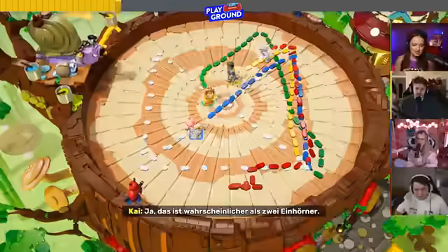 00:39:10Das Spiel geht weiter mit einem Minispiel, bei dem die Spieler Kunstwerke identifizieren müssen, was sich als schwierig erweist, da niemand viel Ahnung von Kunst hat. Anschließend folgen weitere Minispiele wie ein Dance-Off, bei dem Rhythmus und Bewegung gefragt sind, und ein Jump'n'Run-Spiel namens „Terradronica“, das an Takeshi's Castle erinnert. Die Spieler müssen strategische Entscheidungen auf der Karte treffen, um goldene Steine zu sammeln und Fallen zu vermeiden oder zu nutzen. Es gibt Diskussionen über die Effektivität von Power-Ups wie dem goldenen Stiefel, der den Spieler direkt zu einem goldenen Ding teleportiert. Die Interaktionen zwischen den Spielern sind geprägt von freundschaftlichem Wettbewerb und humorvollen Kommentaren, während sie versuchen, die Herausforderungen des Spiels zu meistern und die anderen zu überlisten.