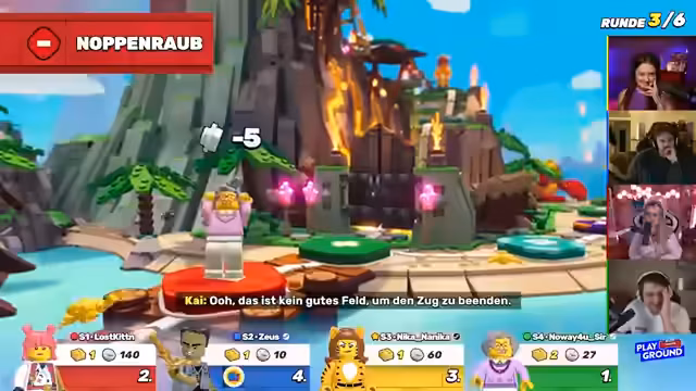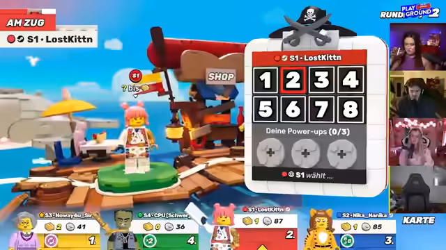 02:00:41Das Spiel 'Lego Party' erreicht sein spannendes Finale, in dem die Spieler versuchen, durch geschickte Züge und den Einsatz von Power-Ups die Oberhand zu gewinnen. Zeus gelingt es, durch einen Tausch mit Lost Kitten einen entscheidenden Vorteil zu erzielen und sich einen goldenen Stein zu sichern. Die Diskussion dreht sich um die besten Strategien und die Unvorhersehbarkeit des Spiels, da sich die Situation in den letzten Runden schnell ändern kann. Ein weiteres Minispiel, bei dem Gabelstapler eine Fracht transportieren müssen, erweist sich als schwierig und führt zu viel Gelächter. Die letzte Runde ist besonders dramatisch, da Zeus durch einen glücklichen Wurf zwei Sterne erhält und somit das Spiel gewinnt. Die anderen Spieler sind überrascht und gratulieren Zeus zu seinem unerwarteten Sieg.
