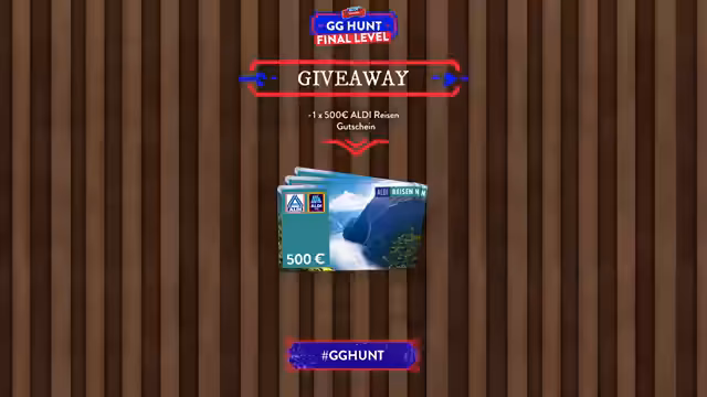 01:44:04Nachdem die erste Challenge, "Peak", erfolgreich abgeschlossen wurde, startet die Verlosung der Gewinne. Moderator Alex verkündet, dass für die Bewältigung der Challenge ein 500-Euro-Aldi-Reisengutschein verlost wird. Im Chat wird zum Hashtag "GG Hunt" aufgerufen, um teilzunehmen. Der Gewinner, dessen Name im Chat geprüft werden muss, wird schließlich bekanntgegeben und zur Überprüfung der Whisper-Einstellungen aufgerufen, um den Preis entgegennehmen zu können.