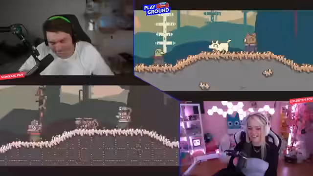 01:44:07Die Streamer spielen ein kooperatives Rätselspiel und navigieren eine Welt aus Plattformen, Falltüren und interaktiven Elementen. Da jeder Streamer eine andere visuelle Darstellung der Umgebung sieht, ist eine ständige Kommunikation und Abstimmung erforderlich, um Hindernisse zu überwinden und Puzzleteile zu platzieren. Es kommt häufig zu Missverständnissen und Fehlern, die die Aufgabe erschweren und zu humorvollen Momenten führen.