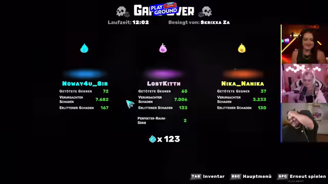 02:02:34Die Gruppe erreicht einen Bosskampf gegen Lord Vruma, der sich als anspruchsvoll erweist. Es wird die Bedeutung von Ausweichen und Teamwork betont, um den Boss zu besiegen. Trotz einiger Schwierigkeiten und Tode gelingt es der Gruppe, den Boss zu besiegen. Nach dem Bosskampf werden Skill-Schaden und andere Verbesserungen ausgewählt. Die Gruppe stellt fest, dass sie im Vergleich zu vorherigen Versuchen deutlich besser geworden ist. Es wird ein Giveaway angekündigt, bei dem fünfmal 100 Euro Aldi-Guthaben verlost werden. Die Zuschauer werden aufgefordert, mit dem Hashtag #AldiGaming am Giveaway teilzunehmen. Die Gruppe setzt ihren Weg fort und stellt fest, dass die normalen Mobs sehr stark sind. Es wird die Frage aufgeworfen, wie man Gegner stunnen kann. Die Gruppe diskutiert über die Wahl zwischen verschiedenen epischen Gegenständen und deren Effekte. Es wird die Bedeutung von Weisheit und Macht hervorgehoben. Die Gruppe trifft auf einen Brunnen, dem sie Gold spenden, um im nächsten Level reichlich beschenkt zu werden.
