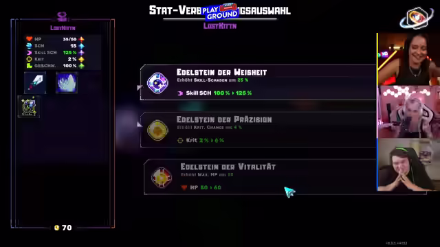 00:14:42Die Spieler erkunden die Spielmechaniken von 'Ember Nights', indem sie ihre Farben ändern und verschiedene Schwerter ausprobieren, die unterschiedliche Elemente bieten. Durch das Absolvieren von Räumen entwickeln sie ihre Charaktere weiter. Lost Kitten hat mehr Leben, da sie das Spiel bereits vorher angefangen hat. Die Ember-Klinge wird als erste Option gewählt, und die Gruppe begibt sich in die Mana-Höhle. Die grundlegenden Fähigkeiten umfassen Linksklick für Angriffe und Space zum Ausweichen oder für einen Stich nach vorne in Kombination mit der linken Maustaste. Nika wird empfohlen, die Sprache auf Deutsch umzustellen, um die Kommunikation bezüglich Items zu erleichtern. Die Spieler wählen verschiedene Fähigkeiten und passive Fertigkeiten aus, wobei sie sich zwischen Nah- und Fernkampf entscheiden müssen. Der Chat wird um Rat gefragt, was die Entscheidung erschwert. Ember scheint die Währung für spätere Aufwertungen zu sein, während Gold für den aktuellen Durchlauf nützlich ist. Die Gruppe trifft auf Gegner und muss vorsichtig sein, um nicht zu viel Schaden zu erleiden.
