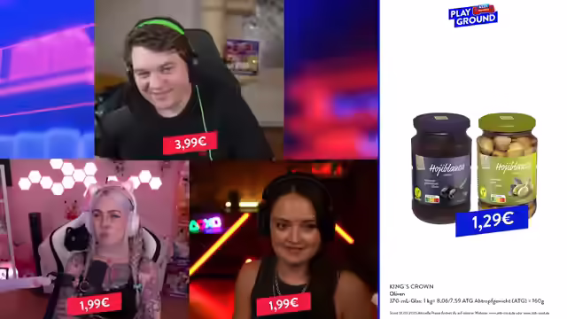 01:04:20Es wird eine Runde des Spiels 'Guess the Price' gestartet, bei dem Produkte aus Aldi Nord und Aldi Süd erraten werden müssen. Die Regeln sind, dass man den Preis nicht unterbieten, sondern nur überbieten darf. Wer am nächsten dran ist, erhält einen Punkt, bei einem genauen Treffer gibt es fünf Punkte. Jeder Punkt entspricht am Ende des Jahres einem Euro in Form von Aldi-Einkaufsgutscheinen. Das erste Produkt sind Hörgerätbatterien, und die Teilnehmer geben ihre Schätzungen ab. Freddy, der die Batterien regelmäßig kauft, errät den Preis richtig. Es folgen weitere Produkte wie Magnesium- und Calciumtabletten, Bio-Garnelen und norwegisches Lachsfilet, wobei die Teilnehmer ihre Preise schätzen und Punkte sammeln. Die Preise werden aufgedeckt, und die Teilnehmer erhalten Punkte für ihre Schätzungen. Es werden auch veganer Räucherlachs und The Wonder Chunks geschätzt, wobei Lost Kitten und Nika Punkte erzielen.