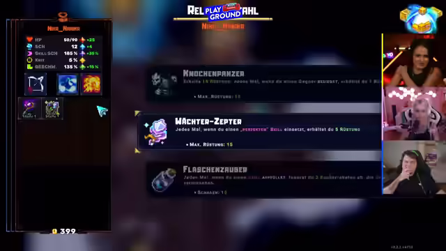 01:38:26Die Gruppe diskutiert über die Effektivität verschiedener Fähigkeiten und Waffen im Spiel. Dabei werden die Sprenggranate und der zaubernde Bogenschütze verglichen, wobei die Sprenggranate aufgrund ihres kleinen Radius kritisiert wird. Nika experimentiert mit Unsichtbarkeit und einer Kombo aus Verbrennen und Vergiften, was zu hohem Schaden führt. Es folgt eine Diskussion über die Wahl zwischen Vitalisieren und Heilung vor einem Bosskampf, wobei man sich letztendlich für Vitalität entscheidet. Die Gruppe wählt Relikte und Skills aus, wobei AOE-Fähigkeiten und Blitzbeschwörungen in Betracht gezogen werden. Die Diskussion dreht sich um die Wahl des besten Relikts, wobei verschiedene Optionen wie das verrottete Zepter und der machtvolle Armreif abgewogen werden. Am Ende entscheidet man sich für den machtvollen Armreif, um die Heilung zu verbessern. Die Gruppe betont, wie wichtig es ist, ruhig zu spielen und auf sicheren Schaden zu gehen, um nicht zu sterben.