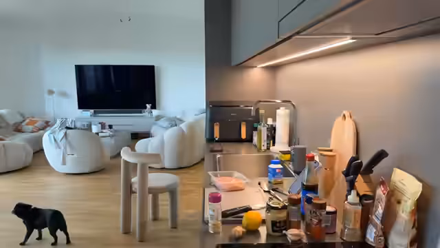 02:40:53Es wird festgestellt, dass die Küche zu klein ist und der Wunsch nach einer Kücheninsel geäußert. Die Streamerin erzählt, dass sie in ihrer Wohnung eine 2,5-Meter-Kücheninsel hat einbauen lassen. Es wird überlegt, wo eine Kochinsel platziert werden könnte und dass bald Gardinen kommen. Das Oberteil ist von Zalando. Es wird über das Hähnchen gesprochen, das im Air Fryer zubereitet wurde und nun in die Soße kommt. Buchweizen ist fertig und es wird Zitrone über das Hähnchen gegeben. Die Streamerin erwähnt, dass sie nie im Bett kocht und fragt, wer im Bett gekocht hat. Es wird diskutiert, ob man das Hähnchen hätte direkt anbraten können, aber im Air Fryer wird es perfekt. Die Streamerin hasst Chicken aus der Pfanne. Sie gibt an 115 Quadratmeter zu haben und dass die Wohnung noch häuslicher gemacht werden muss.