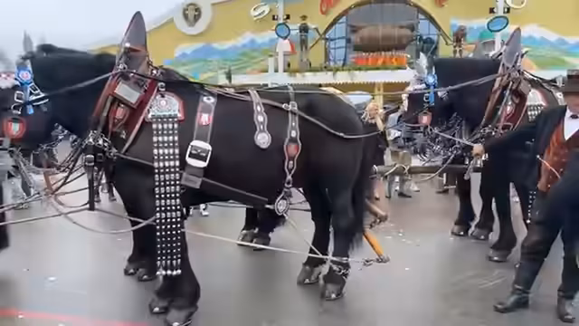01:53:50Der Streamer besucht das Ochsenbraterei-Zelt auf dem Oktoberfest und beeindruckt sich von den dortigen Pferden. Er verbringt Zeit bei den Tieren und stellt fest, dass eines der Pferde den Namen Sepp trägt. Der Streamer zeigt sich von der Umgebung angetan und plant, den Besuch des Festivals fortzusetzen.
