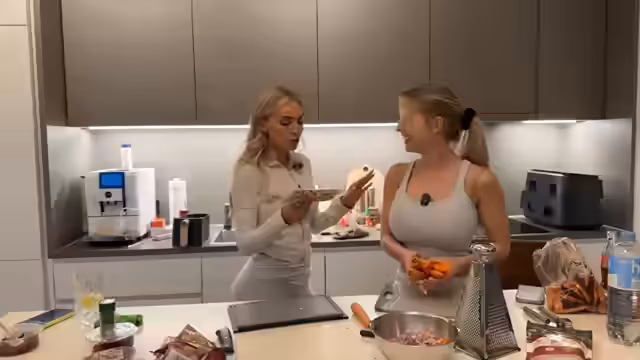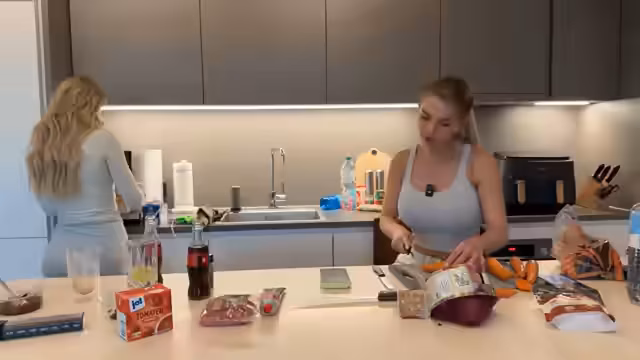 00:50:53Die Streamerin und ihre Freundin beginnen mit der Zubereitung von Spaghetti Bolognese. Sie haben Schwierigkeiten mit dem Auftauen des Hackfleisches, was zu Frustration führt. Sie diskutieren über das Schneiden von Zwiebeln und Möhren. Die Streamerin beschreibt ihren Kühlschrank als immer voll, was ihre Freundin beeindruckt.