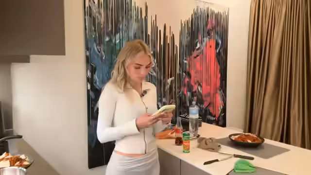 01:27:25Die Spaghetti Bolognese ist fertig, aber das Ergebnis fällt bescheiden aus und sieht eher trocken aus. Die Streamerin hat Bedenken, dass ihre Freundin Katja das Essen nicht lecker finden wird. Sie planen stattdessen, zusammen einen Film zu schauen und vielleicht etwas zu snacken. Sie zeigen ihre Enttäuschung über das Ergebnis mit einem Augenzwinkern.