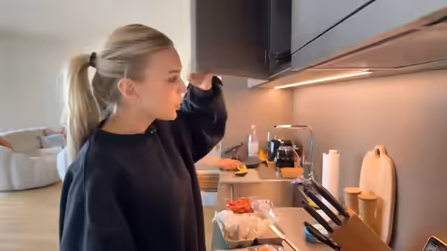 00:46:34Ein Scherz der Schwester, der sie glauben ließ, dass der Supermarkt geschlossen hat, sorgt für einiges Chaos und sorgt für Erleichterung. Die Situation löst sich auf und beide beschließen spontan, ein Bowl essen zu gehen. In der Küche angekommen, berät Nicole Alexis beim Kochen von Rührei und Brötchen. Die Stimmung ist wieder gelöst und entspannt, nachdem die Anspannung der Vormittagsphase verflogen ist.