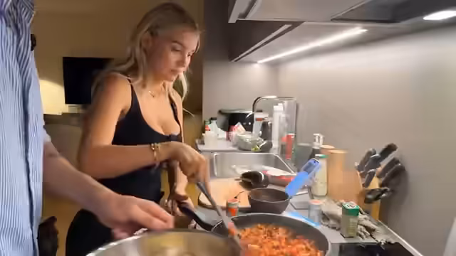 03:29:28Es wird über verschiedene Essensoptionen gesprochen, darunter die Pokebar und ein Foodtruck mit Hotdogs. Die Frage, wie man Nudeln richtig kocht, führt zu einer humorvollen Diskussion über Kochfehler und unterschiedliche Herangehensweisen. Es wird festgestellt, dass die Streamerin unsicher ist, wie man Nudeln zubereitet, was für Belustigung sorgt. Es folgt eine Planung der Zutaten für das Hackfleischgericht, wobei Gewürze und Tomatensauce berücksichtigt werden. Der Chat wird nach Meinungen zu Sahne in der Soße gefragt, aber entschieden, ein 'gesundes' Gericht ohne Sahne zuzubereiten. Die Zubereitung von Gemüse wie Zucchini und Paprika wird vorbereitet. Es wird kurz über eine Lieferung gesprochen, die in Kürze eintreffen soll. Die Streamerinnen amüsieren sich über Kommentare im Chat und planen, bis etwa 23 Uhr live zu sein, da sie mit Schwierigkeiten beim Kochen rechnen.