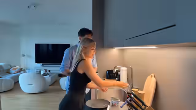 03:40:42Die Stimmung ist ausgelassen, und es wird gescherzt, ob man sich auf einer türkischen Hochzeit befinde. Es wird kurz überlegt, ein Foto per AirDrop zu verschicken. Die Streamerin fragt nach dem Namen eines türkischen Tanzes und erwähnt ihre große türkische Familie und Hochzeiten mit bis zu 2000 Gästen. Es wird Wein eingeschenkt, und die nicht vorhandenen Weingläser werden bemängelt. Anschließend wird das Thema Müllentsorgung angesprochen, und es wird versucht, einen Weg freizumachen. Die Streamerinnen stoßen an und es folgt ein Gespräch über die Benutzung von Handtüchern im Badezimmer. Die Streamerin findet es ungewöhnlich, dass es keine normalen Handtücher gibt, sondern nur viele kleine, zusammengerollte Tücher zur einmaligen Benutzung. Es wird gescherzt und gelacht, während die Vorbereitungen zum Kochen weitergehen.