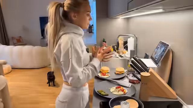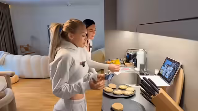 01:07:31Zum Ende des Streams bereitet die Streamerin Rührei zu, nachdem sie lange über den Speiseplan unschlüssig war. Sie macht einen Witz über die Portionsgröße und tauscht sich mit ihrer Schwester über Musik und Trends wie 'iPhone-Copy' auf TikTok aus. Ihre kleine Tochter Alani ist kurz im Stream zu sehen. Beide Schwestern präsentieren das finale Frühstück und verabschieden sich humorvoll vom Publikum, während der Stream endet.