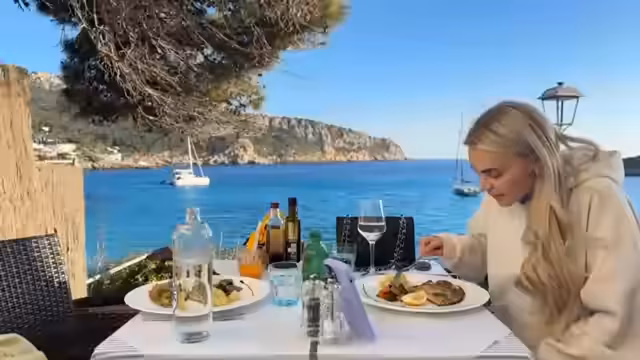00:56:00Besuchen ein Restaurant mit toller Meeresaussicht und bewerten es anhand der Fotos. Es gibt griechische Vibrationen und ähnliche Küchen. Spanische Touristen erkennen sie und machen Selfies mit ihnen. Bestellen Wolfsbarsch mit Ziegenkäsesalat und Weißwein. Die Streamerin hat schlechte Laune wegen eines Traumes über ihren Ex-Freund und Gesprächen über ihre Beziehung.