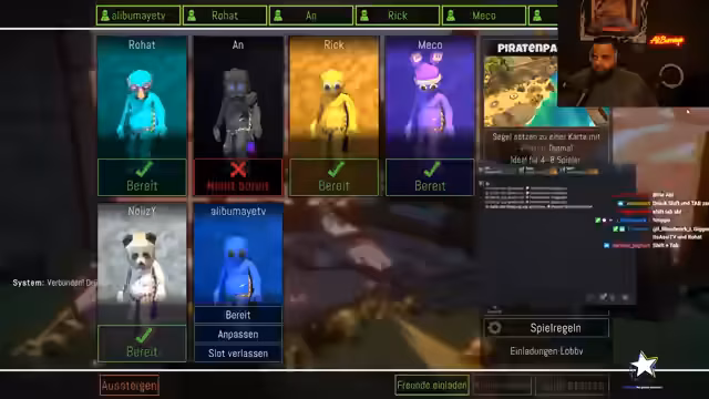 03:45:07Der Streamer initiiert mehrere Spielanfragen für Pummel Party, insbesondere für eine Piraten-Map mit drei Trophäen und allen Minigames. Er lädt explizit Ali, Mejo und Rick ein und bemerkt, dass Ali noch nicht beigetreten ist. Anschließend wird auf technische Probleme bei der Lobby-Erstellung und im Spielverlauf eingegangen. Es werden Fehler beim Starten, Einladen von Spielern und der Verarbeitung von Rundenangaben erwähnt, was zu wiederholten Versuchen führt, eine funktionierende Runde zu starten.