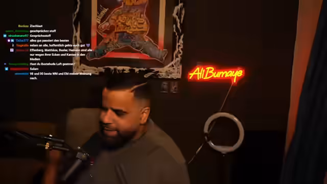 05:03:35Oliver Kahn wird als persönliches Idol und prägende Figur der Kindheit des Streamers beschrieben. Er erzählt von einer persönlichen Begegnung mit Kahn im Hotel in Barcelona und bewundert dessen mentalen Siegeswillen und Führungsqualitäten, insbesondere im Finale der Champions League 1999 und während der WM 2002. Die Entscheidung von Jürgen Klinsmann, Kahn 2006 auf die Bank zu setzen, wird als tiefe Enttäuschung und politische Fehlentscheidung für den DFB angesehen, die bis heute thematisiert wird.
