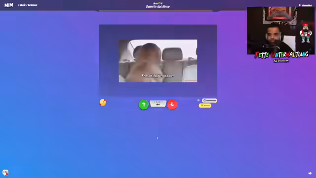 00:19:04Das Spiel 'Make it Meme' beginnt, bei dem die Teilnehmer versuchen, Memes anhand von Stichworten zu erstellen. Der Streamer betont mehrfach, dass das Niveau des Humors in der Runde sehr niedrig ist und er Mühe hat, die anderen zu treffen. Es kommt zu internen Dynamiken und Provokationen, insbesondere zwischen den Teilnehmern, die sich gegenseitig aufziehen und bestimmte Memes gezielt erstellen, um zu provozieren.