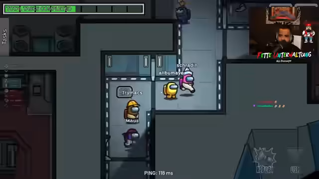 01:58:35Die Gruppe beginnt mit dem Spiel Among Us. Zuerst gibt es technische Hürden, wie z.B. fehlende oder geleakte Codes und die Frage, ob mit oder ohne Subs gespielt wird. Nach Klärung der Regeln und einer Anpassung der Einstellungen auf zwei Impostor startet das Spiel. Die Spieler beginnen mit ihren Aufgaben und versuchen, Leichen zu finden und verdächtige Aktivitäten zu melden.