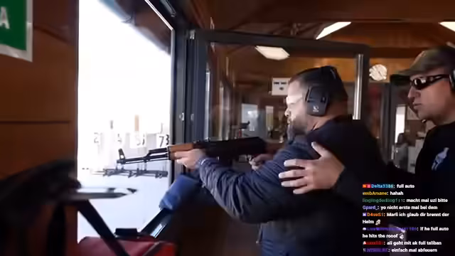 03:09:55Die Streamer vergleicht verschiedene Waffen, darunter ein LMG und eine Tommy Gun, und teilt seine persönlichen Präferenzen. Er erwähnt nostalgische Verbindungen zu bestimmten Waffen aus Videospielen wie Call of Duty. Während des Schießens diskutieren sie auch über Serientipps, wobei Breaking Bad und Gomorra als hochgelobt werden. Die Atmosphäre ist dabei sowohl technisch interessiert als auch unterhaltsam, mit regen Austausch über die Waffen und deren Handhabung im Vergleich zu virtuellen Darstellungen in Spielen und Filmen.