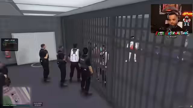 01:24:51Die RP-Session wird durch einen chaotischen Polizeieinsatz dominiert. Officer Buddy Love und sein Kollege versuchen, eine Festnahme durchzuführen, nachdem Herr Salami von der RBG-Gang entführt wurde. Der Einsatz eskaliert, es kommt zu Schüssen und Festnahmen. Vorgesetzte kritisieren Buddy Love für unsauberes Vorgehen, das Risiko für alle und Alleingänge. Er wird degradiert und aufgefordert, sich seinen Partner abzuholen und eine Sicherheitspause einzulegen.