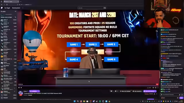 01:21:10Bevor es ins Spiel geht, gibt es erhebliche technische Probleme. Das Team kann nicht dem eigentlichen Turnierbeitritt beitreten. Die Lobby startet nicht korrekt, und wiederholte Versuche, ein Turnier zu starten, scheitern. Ein falsches Matchmaking wird vermutet. Die Nervosität im steigt, während der Streamer versucht, das technische Chaos im Chat zu erklären und zu deeskalieren. Es herrscht kurzzeitig Verwirrung über den genauen Ablauf.