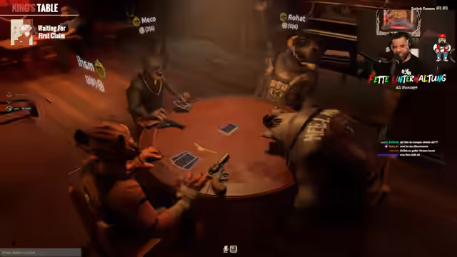04:19:51Der Stream beginnt im Backend des Horrorzimmers Doree 65, einem Raucherraum, der als Spielort dient. Nach anfänglichen technischen Schwierigkeiten wird ein interaktives Kartenspiel gestartet, bei dem die Teilnehmer um virtuelle Wetteinsätze spielen. Das Spiel ist hochspannend und emotional aufgeladen, mit Bluffen, gegenseitigen Vorwürfen und dramatischen Wendungen. Der Streamer agiert als Moderator und beobachtet die Vorfälle aus seiner Perspektive, während die Zuschauer über den Chat involviert sind und die Aktionen kommentieren. Eine Konfrontation eskaliert, als einer der Spieler, Ali, von Mali verraten fühlt und die Runde als ungültig ansieht. Der Streamer vermittelt zwischen den Parteien und versucht, die Spannung aufrechtzuerhalten, was zu einem "Draw", also einem unentschiedenen Ausgang, führt.