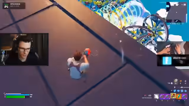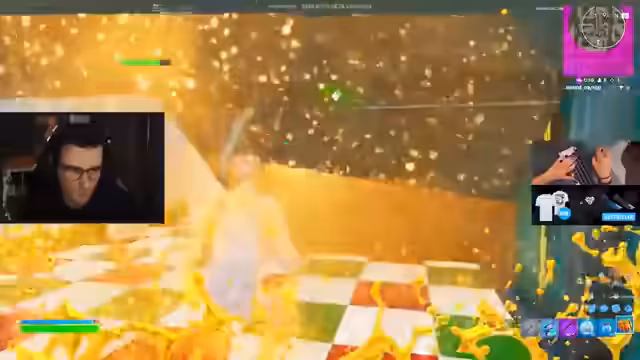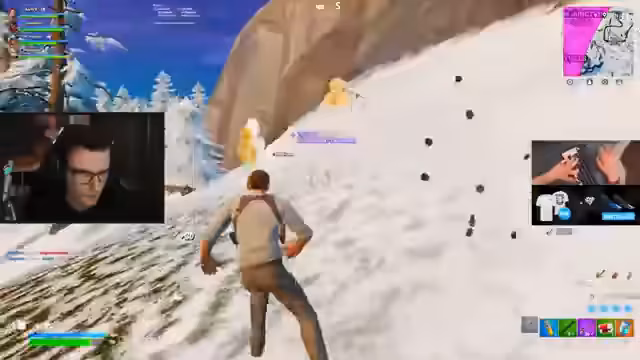 00:45:28Während der Streamer und seine Mitspieler versuchen, ihre Skybasen zu errichten, schrumpft die Zone. Es kommt zu ersten Auseinandersetzungen, bei denen gegnerische Spieler mit Snipern ausgeschaltet werden. Der Streamer nutzt einen Rift, um sich zu retten, doch sein Bauprozess wird durch Angriffe und Druck von Gegnern behindert.