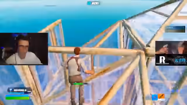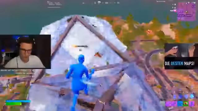 00:01:11Der Stream beginnt mit dem Ranked Skybase Battle. Der Streamer hat als DIA-Rang gemeldet und erklärt, dass ab der vierten Zone der Bau ausschließlich nach oben erlaubt ist. Only Pumps sind von Anfang an im Kampf erlaubt, was eine strategische Änderung gegenüber normalen Matches darstellt. Der Streamer berichtet von seinem Haupt-Sprungort, dem New Sanctuary, und betont die Notwendigkeit von Metall- und Ziegel-Reserven, um die Skybase halten zu können.