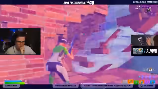 01:49:10Das Turnier begann, als alle Teams ihre zugewiesenen Landegebiete und Waffenklassen angenommen hatten. Das Team mit den ARs (blaue Skins) nutzte sofort seinen Vorteil im Fernkampf, um Gegner aus der Distanz zu eliminieren. Während des Spiels betonte der Streamer die Notwendigkeit, auf Munition und Items zu achten, und gab taktische Anweisungen für das Teamplay. Die Kampfphase war geprägt von der Dominanz der AR-Spieler, die in der Lage waren, rote und grüne Skins effizient auszuschalten.