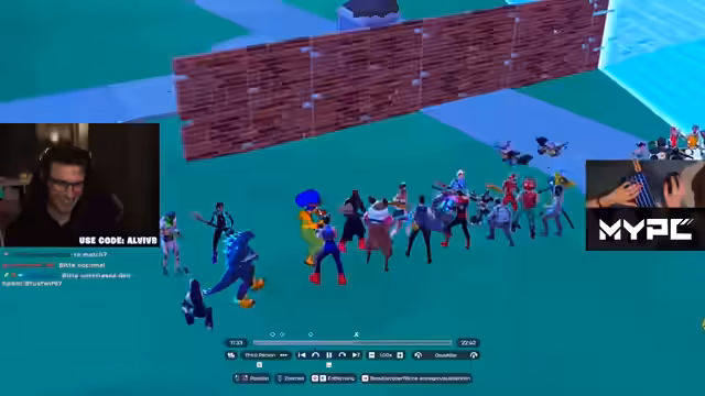01:47:53Das Spiel nähert sich dem Ende, und die Spieler werden angewiesen, in die Zone zu sneaken und sich zu einem Airdrop zu bewegen. Dort müssen alle Spieler auf den Airdrop klettern; wer keinen Platz findet oder schießt, wird eliminiert. Anschließend wird die Gruppe weiter in die Zone geschickt, wo sie in einen Busch gehen müssen, wobei der letzte Spieler eliminiert wird. Die Spieler werden aufgefordert, auf ein Auto zu schießen und sich an einer Wand aufzustellen, um weitere 'Alvi sagt'-Befehle auszuführen. Schließlich wird ein Kampf bis zu den Top 3 angeordnet, gefolgt von einem Pickaxe-Duell ohne Bauen, um den Gewinner zu ermitteln. Der Sieger wird gefeiert, und es wird über die Kills der Creator gesprochen.