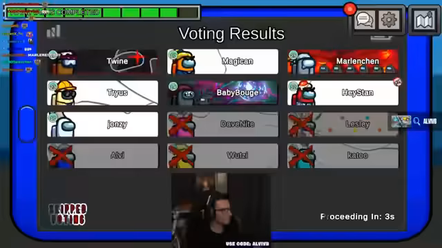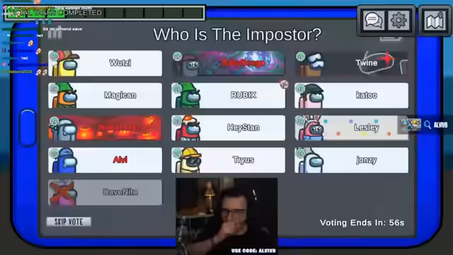 00:44:36Nachdem die Lobby und der Code für Among Us erstellt wurden, beginnt das Spiel. Der Streamer begrüßt dabei auch die aus dem TikTok-Chat kommenden Zuschauer und weist auf die Vorteile der horizontalen Ansicht für das Spiel hin. Im ersten Meeting wird über den Tod von Dave diskutiert. Die Analyse der Todesstelle und der Bewegungen der Spieler führt zu Verdächtigungen gegenüber Magikin und Stan, da sich der Täter in einem abgelegenen Bereich der Karte aufgehalten haben muss.