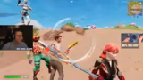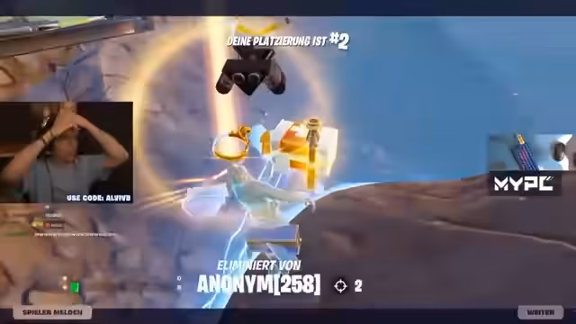 02:15:00Der Streamer befindet sich in einem äußerst hektischen Hide and Seek-Gefecht. Er ist gefangen und kann nicht in ein Portal, bauen aufgrund desselben nicht und ruft verzweifelt nach Unterstützung. Nachdem er befreit wurde, geht er zum Gegenangriff über, eliminiert den Gegner und beschreibt den Kampf als einen "angevisierten 21er-Hit". Er bezeichnet den Gegner als sehr schlechten Spieler, was auf das Niveau der Konkurrenz hindeutet.