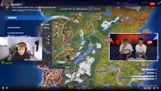 Es wurde die FNCS Grand Finals im Red Bull Gaming Garden verfolgt. Fokus lag auf deutschen Teams wie Viko, Flixi und Veno sowie auf Legenden wie Reason. Ein Wettbewerb zwischen den Teilnehmern und die Analyse der Drop-Map standen im Vordergrund, um die Siege im Turnier zu sichern.