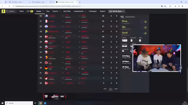 03:21:36Die laufenden Platzierungen des FNCS-Turniers werden vorgestellt. Cringe ist auf dem 18. Platz und hat sich zwei Plätze nach oben gearbeitet, während viele deutsche Teilnehmer im Ranking vertreten sind. Abschließend wird die Organisation für den nächsten Tag angesprochen, wobei technische Probleme mit den Mikrofonen erwähnt werden, die kurzfristig gelöst werden mussten, um das Event fortsetzen zu können.