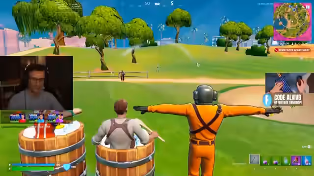 01:22:49Es wird eine weitere Map-Session angekündigt, diesmal eine Zombie-Jäger-Map auf einer Creative Map, an der neun Creator teilnehmen. Für die Map wird ein eigener Custom-Key genutzt. Parallel dazu gibt es wichtige Ankündigungen. Der Streamer erwähnt, dass sein Creator-Code 'AlviVB' in Fortnite auf Platz 29 der weltweit favorisiertesten Creator steht. Weiterhin kündigt er neue Cosmetics für den 28. März, neue Oster-Inhalte und neue Game-Modi für seine Minigame-Boxfights-Map an, darunter Jump Leaks und Death Run.