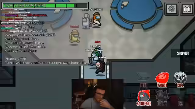 02:35:21Es wird über Spielstrategien und Beobachtungen während einer Among Us Runde diskutiert. Rubix und Marlene haben den Müll rausgebracht, was zu Spekulationen führt, wer für den vielen Müll verantwortlich ist. Es wird analysiert, ob in den letzten Sekunden ein Electrical-Vorfall stattgefunden hat und ob jemand hätte entkommen können. Marlene wird neckisch als 'sass' bezeichnet, weil sie Tron die Poster war. Es wird über frühere Spielzüge gesprochen, bei denen Informationen zurückgehalten wurden, um den Ausgang zu beeinflussen. Die Abwesenheit von Dave wird bemerkt, was die Atmosphäre im Spiel verändert. Es wird die Notwendigkeit betont, jemanden zu beschützen, und es kommt zu einem Vorfall, bei dem ein Save fast misslingt. Die Spieler diskutieren über ihre Wege und Beobachtungen, einschließlich eines Vorfalls im O2-Bereich und der Anwesenheit von Spielern in Security. Es wird spekuliert, dass jemand einen Kill machen wird, und die Notwendigkeit betont, Wuzzi zu beschützen, falls er Wendt ist. Ein gescheiterter Versuch, Try zu retten, wird bedauert, und es wird die Schwierigkeit hervorgehoben, Aufgaben zu erledigen, während Kills unbemerkt bleiben. Es wird überlegt, ob es smarter gewesen wäre, einen Kill zu machen und zu reporten, anstatt wegzulaufen. Ein Missklick bei der Eingabe von Zahlen in Admin wird thematisiert, und es wird auf verdächtiges Verhalten hingewiesen.