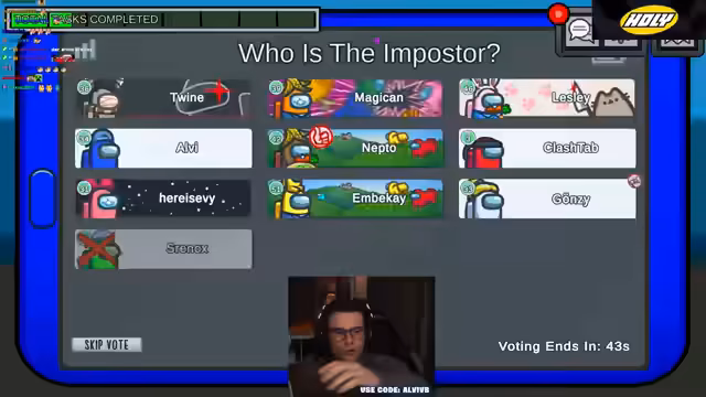 00:42:45In der zweiten Runde agiert der Streamer wieder als Imposter. Er eliminiert Twine, was ihm später zum Verhängnis wird. Die Diskussionen werden emotional und persönlich, insbesondere als Alvi den Streamer als schlechtesten Imposter-Mate bezeichnet. Dies führt zu einem hitzigen Streit im Spielchat, in dem gegenseitige Vorwürfe und Provokationen ausgetauscht werden. Die Stimmung kocht hoch und das Spiel wird zunehmend von der persönlichen Rivalität geprägt.
