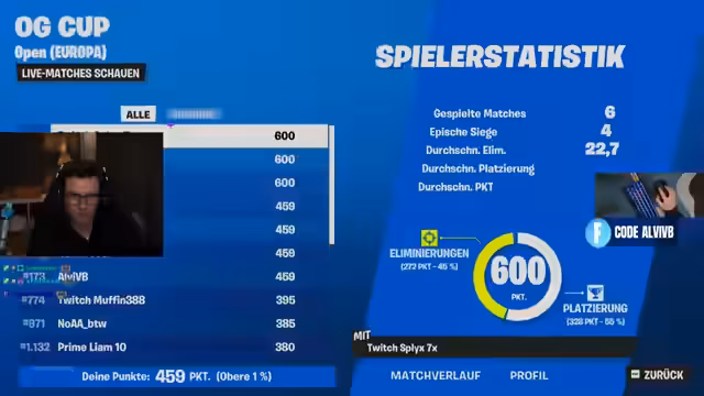 AlviVB präsentierte einen abwechslungsreichen Fortnite-Abend. Zuerst stand Hide & Seek auf dem Programm, mit Verstecken in Tilted Towers und der gesamten Zone. Anschließend folgte der Squad Cup, in dem strategische Bergpositionierung, Teamwork und taktische Entscheidungen im Vordergrund standen. Unerwartete Wendungen sorgten für zusätzliche Spannung.