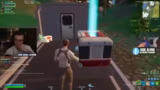 00:56:18Der Streamer wechselt zum Ranked-Modus in Fortnite und spielt mit John C. gegen andere Zuschauer. Die Runde ist geprägt von chaotischem Gameplay und ständigen Angriffen. AlviVB interagiert stark mit den Spielern und dem Chat, unterhält sich über deren Ränge, Alter und Hobbys. Es kommt zu Missverständnissen und Streit über das Verhalten im Spiel, insbesondere über das Streamsniping und den Umgang mit anderen Spielern.
