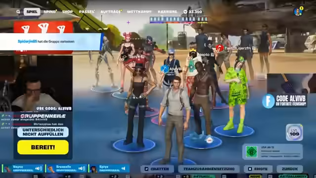 Es wurde ein besonderes Fortnite-Event gestaltet, bei dem AlviVB und ein Partner als verdeckte Operative in einer 100-Spieler-Lobby agierten. Die zentrale Herausforderung bestand darin, unauffällig unter den Spielern zu bleiben und diese gezielt auszuschalten. Das Spiel wurde als äußerst unterhaltsam und fordernd beschrieben, bei dem Verdächtigungen und strategische Züge den Ausschlag gaben.